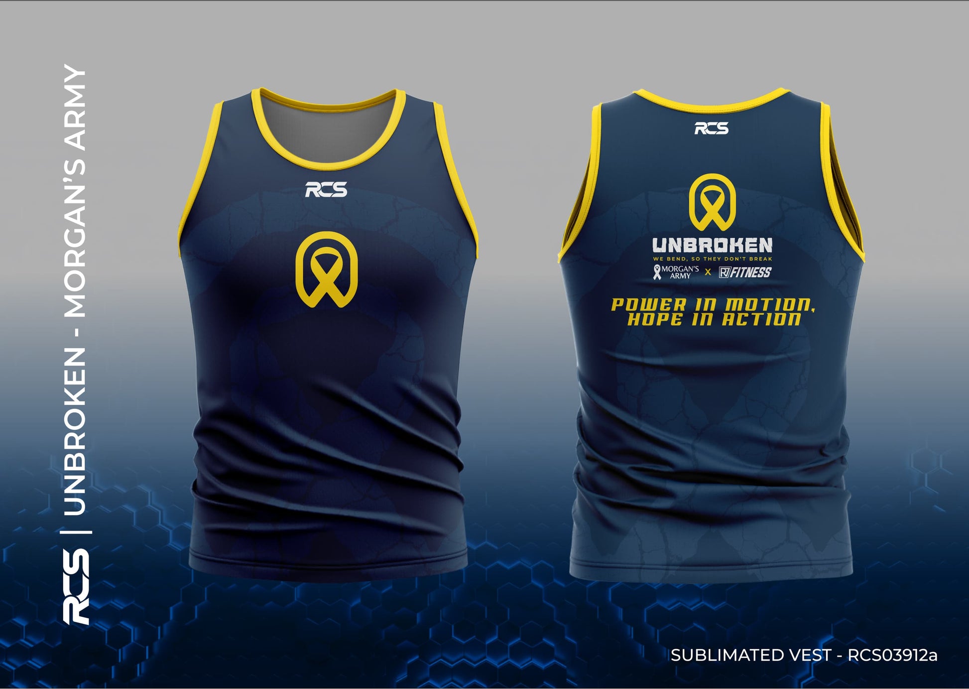 Featuring the bold UNBROKEN logo and gold detailing for childhood cancer awareness, the Morgan’s Army logo and of course our gym partner R7 Fitness every top sold helps fund support for families facing the toughest battle of all.
